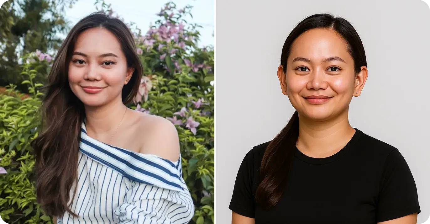See how AI Headshot Background Generator - Professional Headshot Background & Red Background Portrait Maker transforms your photos